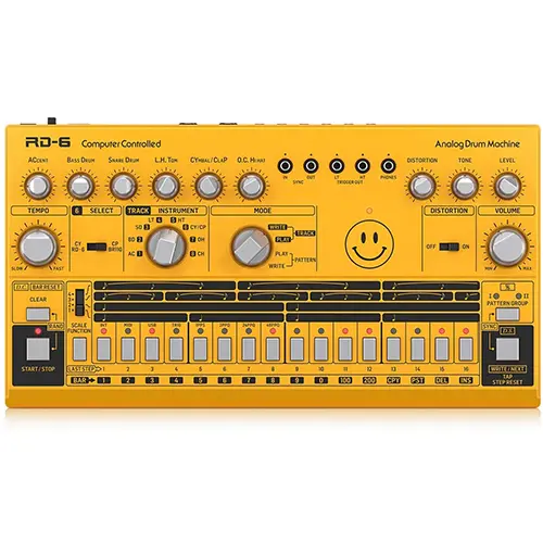 Por lo tanto, concluimos que esta caja de ritmos analógica tiene una edición ácida y sonriente y la puedes conseguir por poco más de 100 euros en el momento de redactar este review. El Behringer RD-6 tiene los siete sonidos analógicos 606 y el clap de la caja de ritmos DR-110, y la verdad es que nos dejó buenas sensaciones al pasar unas horas con ella.