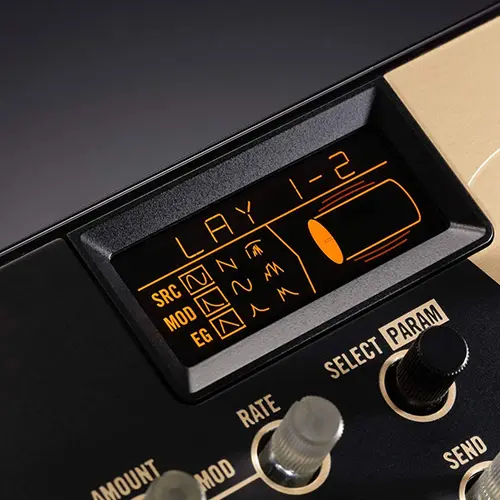 Cada capa tiene también su propio control de tono y nivel. También hay varias funciones de desplazamiento «ocultas» disponibles para cada capa, que pueden utilizarse para aplicar efectos de aplastamiento de bits, plegado de ondas o drive, así como para alterar el panorama y la ganancia.