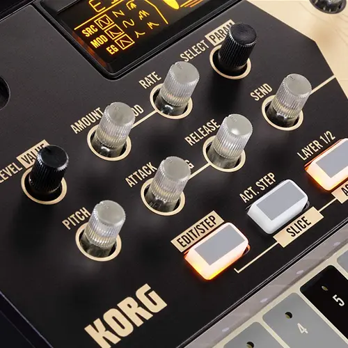 La habitual función Active Step también está presente aquí, que permite a los usuarios desactivar los pasos elegidos de la secuencia actual para realizar variaciones y polirritmias sobre la marcha. Sin embargo, aquí también tenemos una nueva función Slice, que puede añadir redobles a un paso del secuenciador elegido, cuya longitud puede editarse desde el panel frontal.