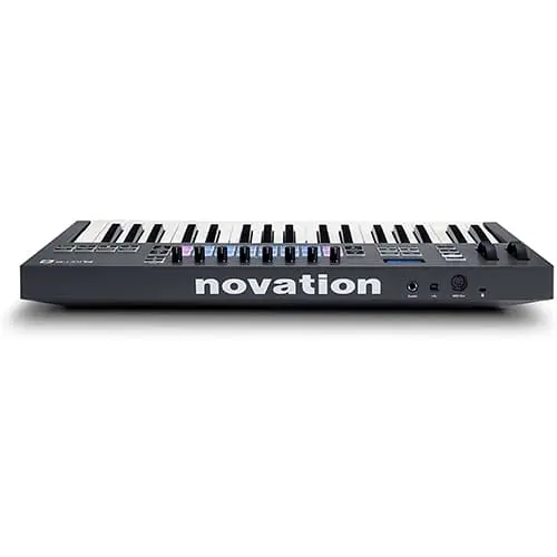 En el panel trasero, hay una entrada de pedal de sustain, un puerto de bloqueo Kensington y una salida MIDI DIN/mini-jack para utilizarla con sintetizadores y otro hardware. La calidad de construcción es profesional y el diseño, aunque no es especialmente llamativo, mantiene las cosas sencillas en términos de flujo de trabajo. Las teclas están bien etiquetadas y dispuestas, y la pequeña pantalla de la 37 añade una capa adicional de información.