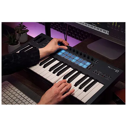 Los nuevos teclados FLkey de Novation. Diseñados para ser plug-and-play, se conectan a FL Studio sin necesidad de ninguna configuración y están preconfigurados para controlar las notas y comandos MIDI normales, la navegación de la interfaz y mucho más.