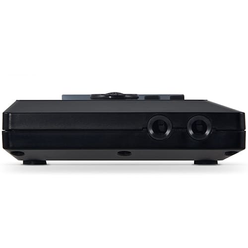 El Akai pro MPX8 está construido en plástico negro, ligero pero al mismo tiempo rígido, y dispone de dos salidas de audio balanceadas en el lateral, además de una toma de auriculares (minijack) convenientemente situada en la parte delantera. La falta de salidas individuales no es algo inesperado a este precio que calificamos como «barato». Los puertos de entrada y salida MIDI son poco convencionales; se accede a ellos a través de cables adaptadores cortos de 3,5 mm, como se ha visto anteriormente en el MPC Studio de Akai.