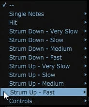 Hay muchas formas de tocar los acordes, una de ellas es golpear o rasguear los acordes con diferentes combinaciones de notas, velocidades y direcciones. Por ejemplo, se puede asignar una tecla para rasguear las 3 primeras notas del acorde y otra para golpear las 2 notas centrales.