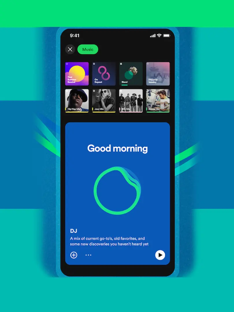 Cuanto más escuches y le digas al DJ lo que te gusta (y lo que no), mejores serán sus recomendaciones. Según Spotify, la voz del DJ se ha inspirado en la del jefe de asociaciones culturales de la empresa, Xavier «X» Jernigan, que presentó el primer programa matinal del servicio, The Get Up.