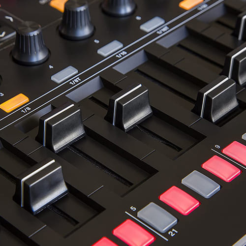 Los faders están disponibles a partir de la versión intermedia, la MPD226 cuenta con 4 faders y la MPD232 cuenta con 8. Todos son asignables y en total puedes utilizar 12 en una y 24 en la otra.